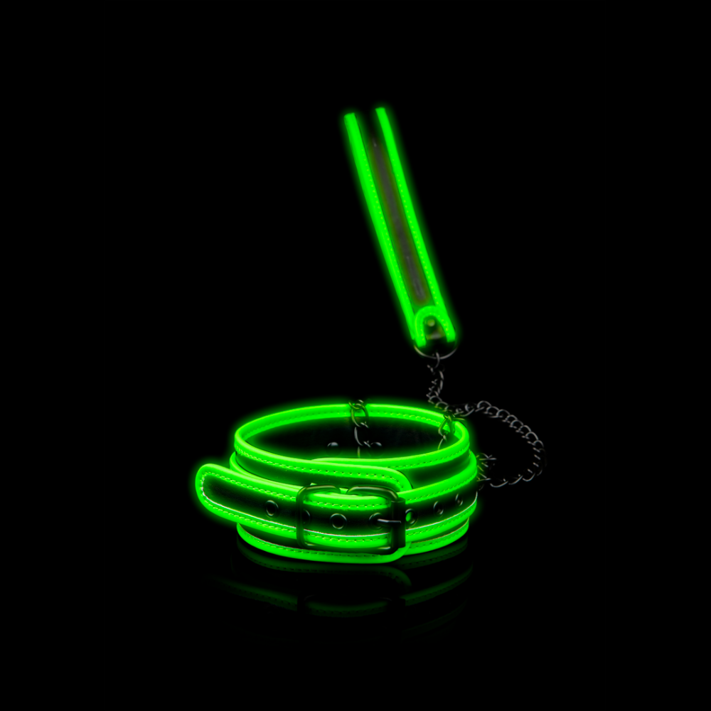 SHOTS Ouch! Collar and Leash - Glow in the Dark