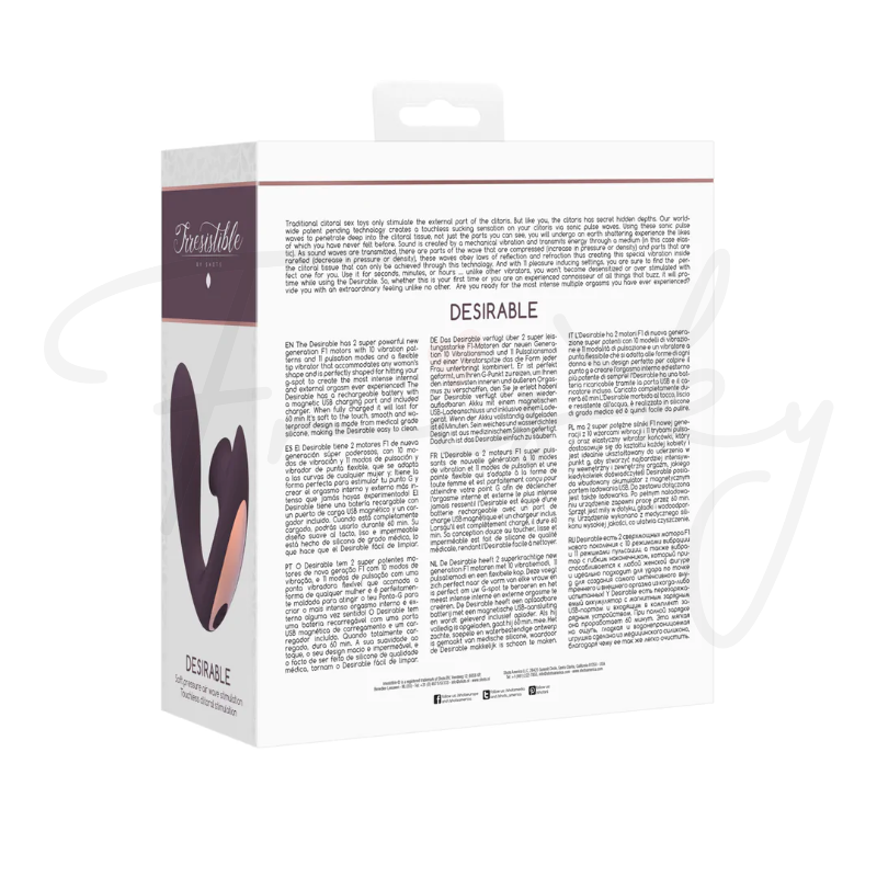 Experience the ultimate pleasure with Desirable's advanced F1 motor, 10 vibration modes, and unique sonic pulse wave technology. Designed for simultaneous G-spot and clitoral stimulation, this medical-grade silicone vibrator ensures comfort, power, and unforgettable sensations. Rechargeable, waterproof, and perfect for beginners or connoisseurs alike.