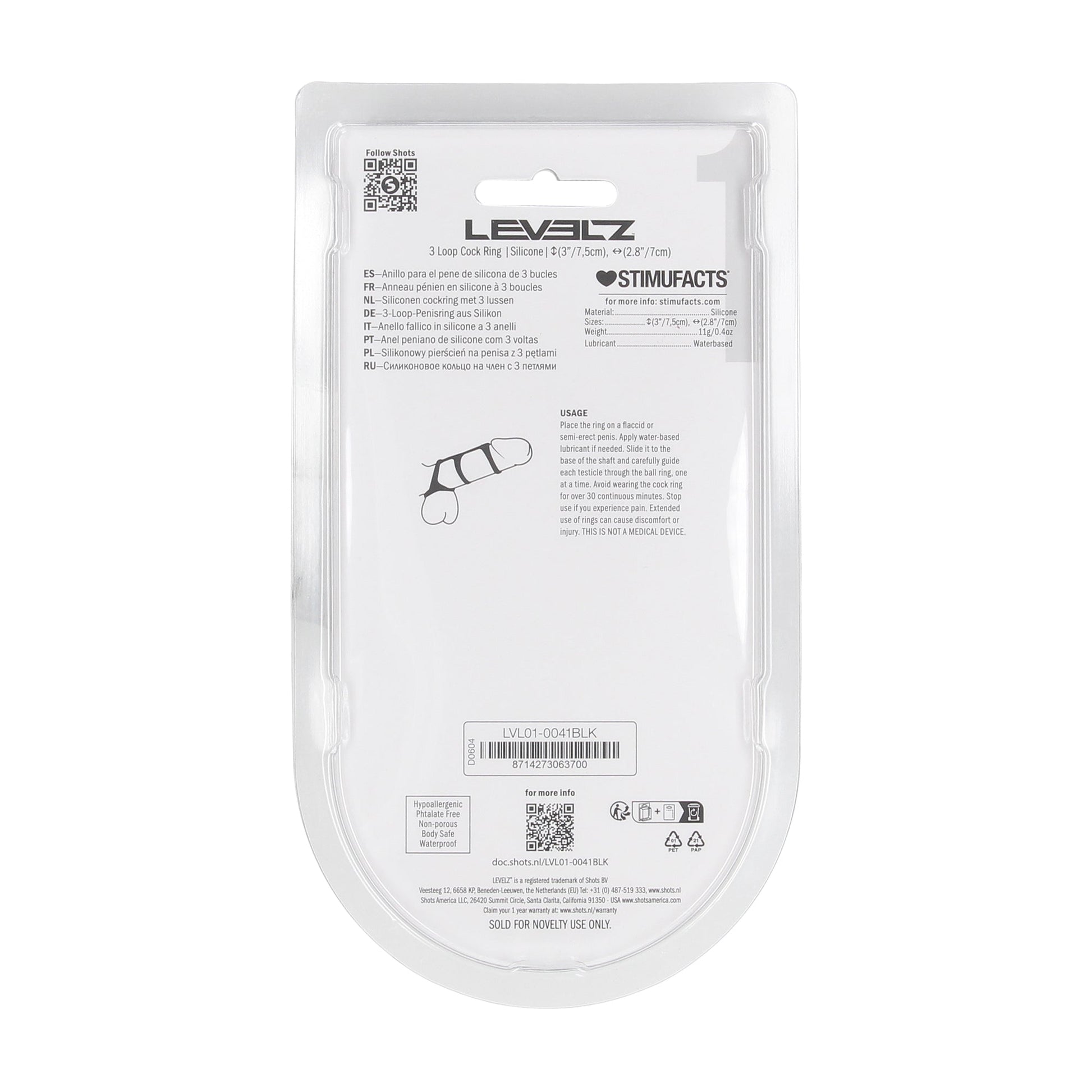 Experience stacked power and layered control with this advanced 3-loop silicone cock ring from the LEVELZ collection. Crafted for users who enjoy structure, tension, and intensity, the three connected rings wrap the shaft at multiple points, enhancing blood flow while creating a firmer, more controlled sensation from base to tip. Made from ultra-smooth, body-safe silicone, it’s flexible, durable, and comfortable enough for both beginners and seasoned users. Packaged in a sleek clamshell, this ring delivers premium performance with retail-ready presentation.