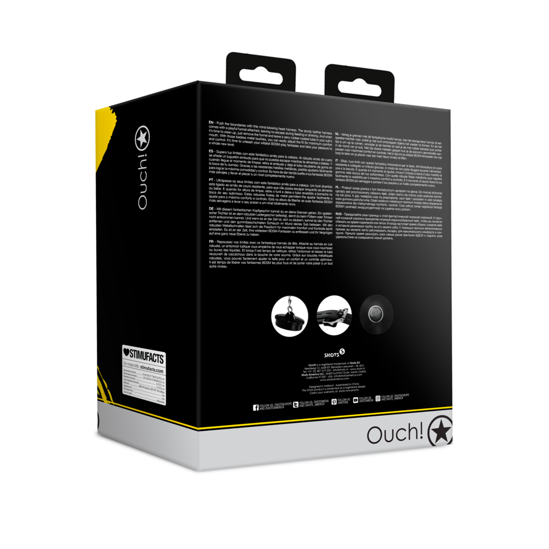 SHOTS Ouch! Open Mouth Gag Head Harness with Funnel - Black