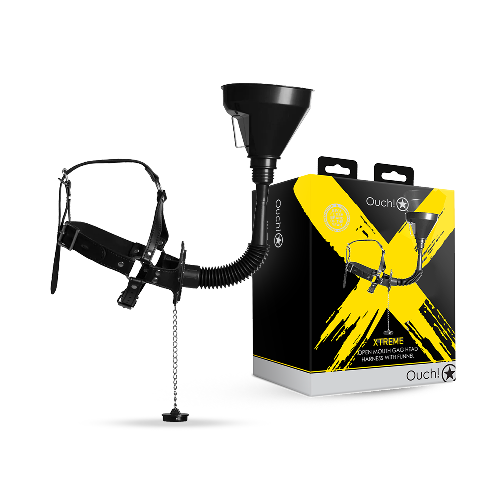 Push the boundaries of control with this mind-blowing head harness. Designed for intense BDSM play, the sturdy leather harness features an O-shaped gag that keeps the mouth wide open, while the detachable funnel lets you take dominance to the next level. Adjustable metal buckles ensure a comfortable yet secure fit, making it perfect for liquid play, feeding, and sensory exploration.