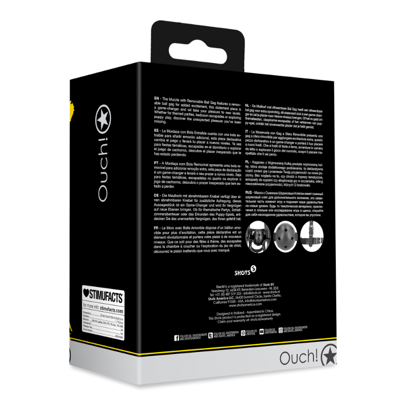SHOTS Ouch! Muzzle with Removable Ball Gag - Black