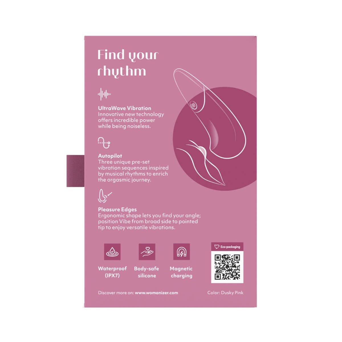 Womanizer Vibe is a silent, clitoral vibrator offering new kind of stimulation with Womanizer‘s new UltraWave Vibration. This technology offers deep, rumbly, vibrations for stronger and more intense orgasms without overstimulation. It‘s unique shape is specifically designed to enhance your pleasure, with various stimulation points to explore versatile vibrations. Thanks to the linear drive motor, Vibe is noiseless, meaning no distractions just pure pleasure.