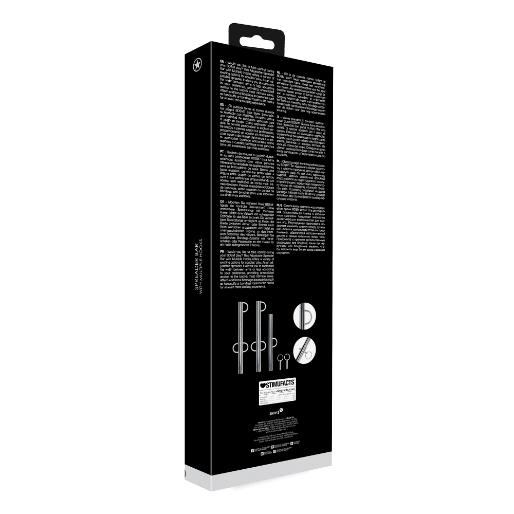 Would you like to take control during your BDSM play? The Adjustable Spreader Bar with Multiple Hooks opens the door to a new level of control and creativity. Whether restraining arms or legs, this versatile bar enhances your position play, giving you unrestricted access and boundless possibilities. Use the seven secure hooks to add handcuffs, ropes, or any other bondage accessory for a fully customized experience.
