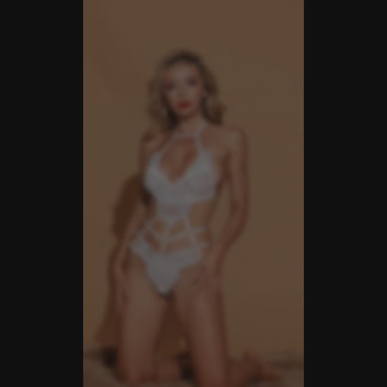Turn up the allure with this White Strappy Lace Halter Bodysuit. Featuring a sultry hollow-out waist cut and an enticing backless design, this teddy is the perfect blend of elegance and seduction.