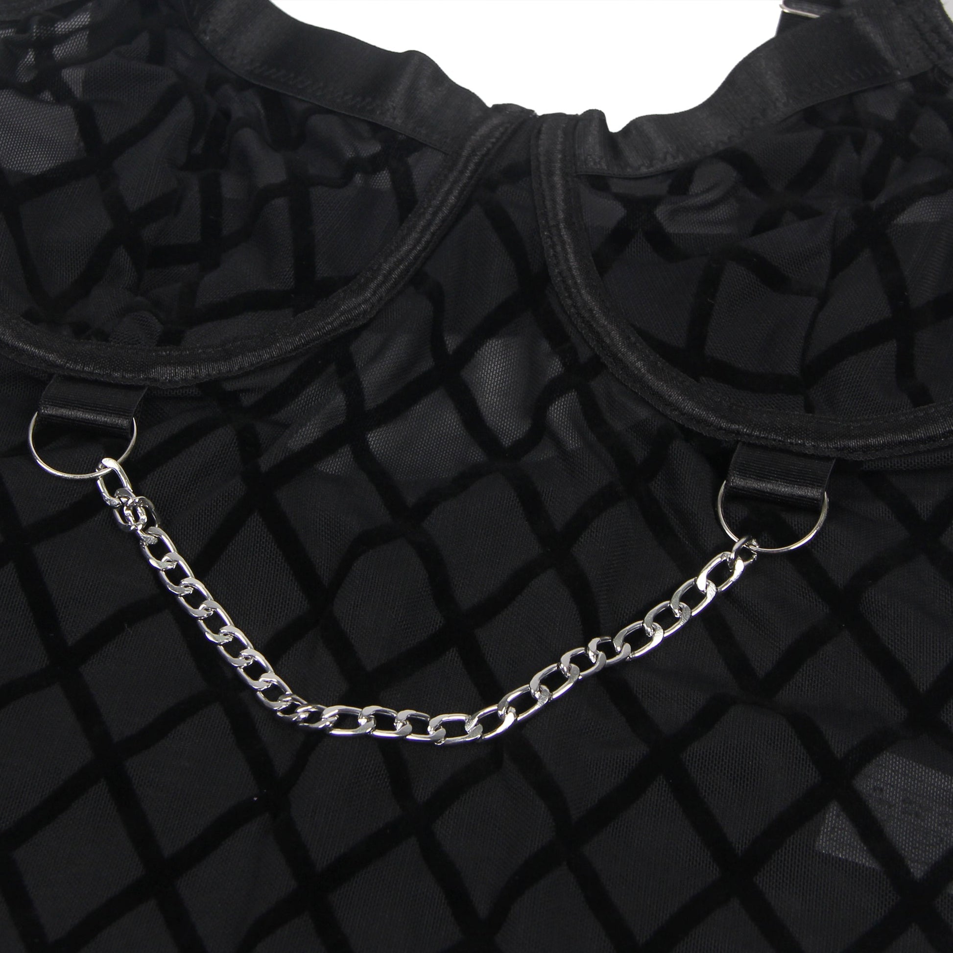Bodysuit - 2 Pcs Mesh Chain Lingerie with Garter Belt
