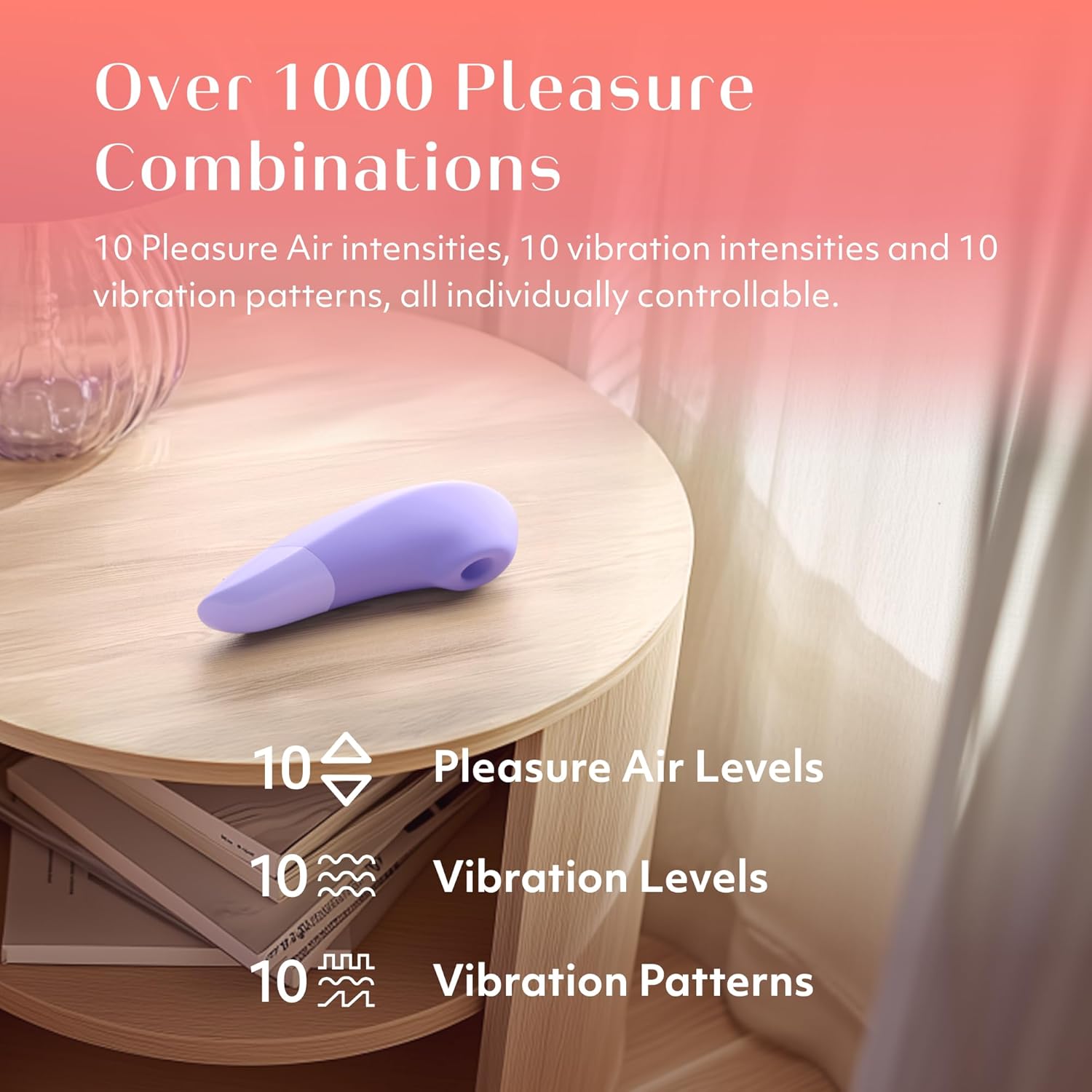 - 10 Vibration Patterns: Find your rhythm and try something new - whether you prefer a constant pulse, a low-to-high crescendo or a thrilling wave.