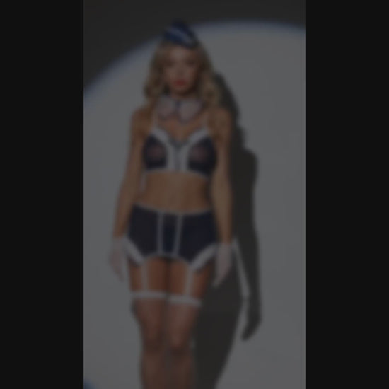 Command the room with charm and allure in the Seven-Piece Blue & White Air Hostess Costume Set. Playful, sexy, and unforgettable—this outfit is crafted to make roleplay irresistible.