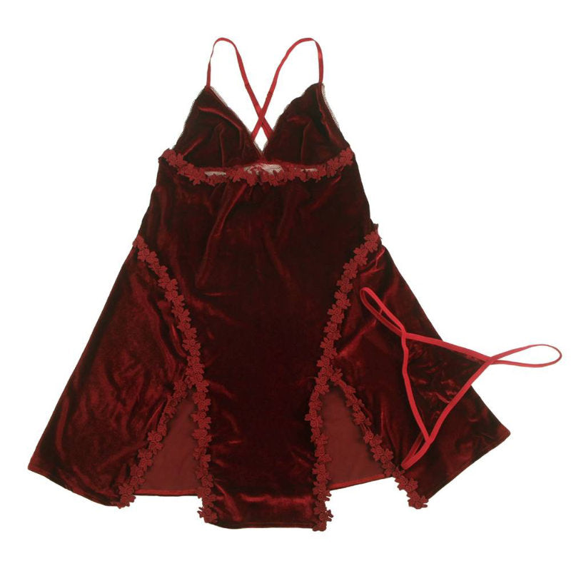 Babydoll - 2 Pcs Velour Embroidery Sleepwear With G String